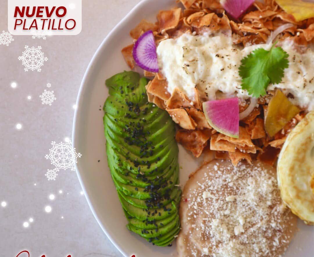 Bañados en mole casero de cacahuate y chocolate, acompañado de plátano macho, queso, crema, frijoles y aguacate