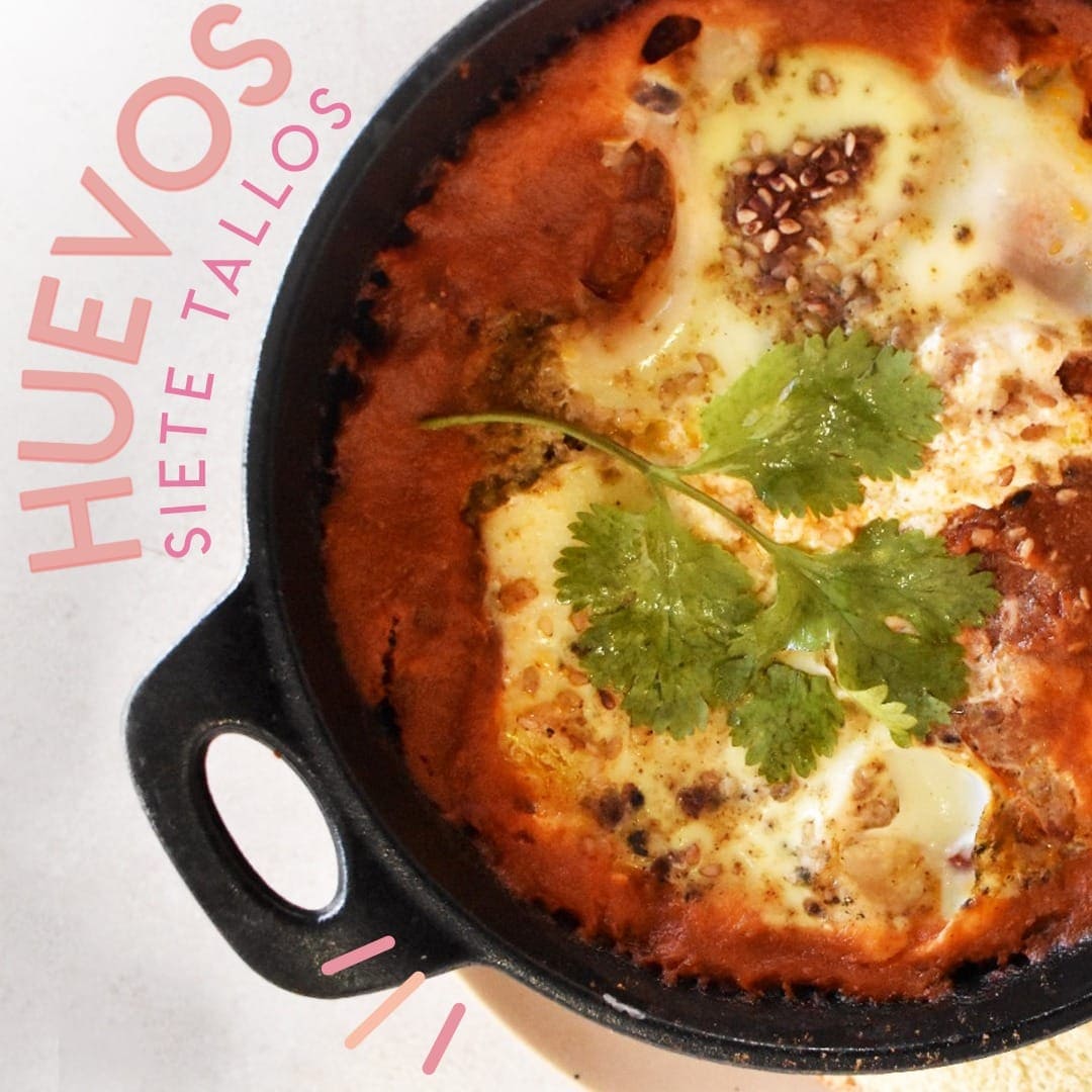 3 huevos, acompañados de ensalada y champiñones al pesto