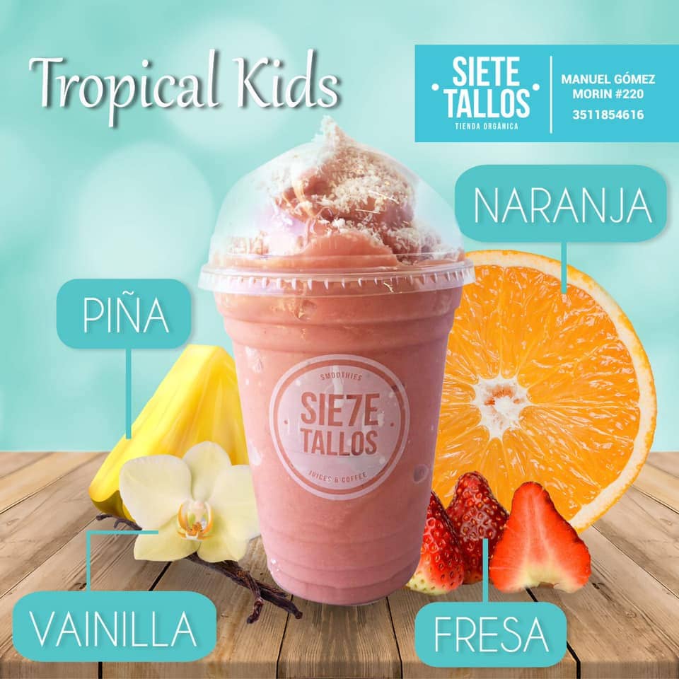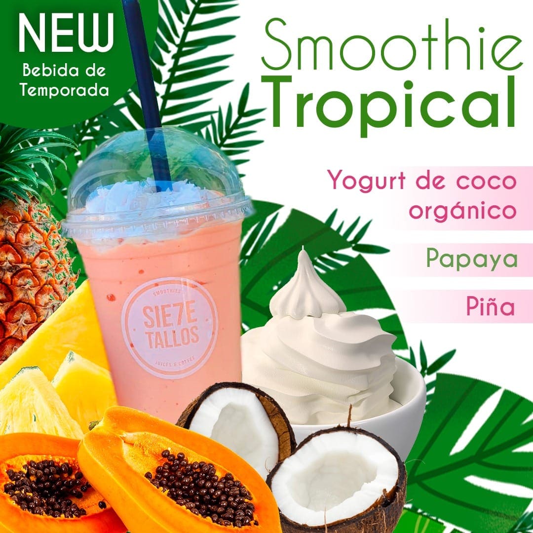 Papaya, piña, plátano, yogurt coco, agave. Topping: coco